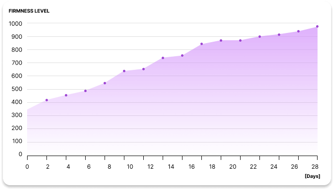 - Rafforza esponenzialmente la pelle e definisce il contorno del viso, aumentando la produzione di collagene ed elastina, rendendo la pelle fino all'87% più soda ed elastica. Il viso acquisisce forma, il doppio mento diminuisce e gli zigomi e la mascella inferiore vengono accentuati.